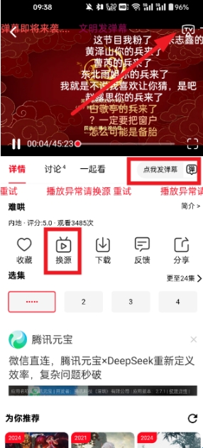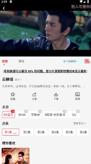 找到自己喜欢的资源后,就可以开始看了,支持投屏、弹幕、下载、换源等实用功能。