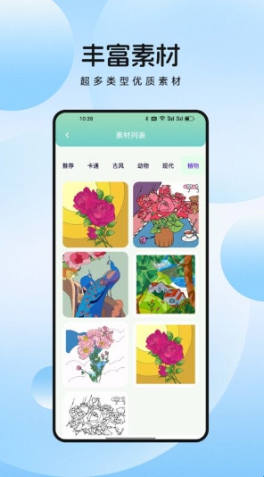2、操作简单易上手,无论是素材选取、绘画填色还是使用绘图工具,都能快速掌握。
