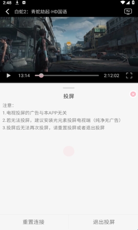 如图,手机和投屏设备在同一wifi下载,完成连接投屏设备后就能开启投屏播放。