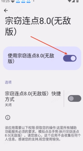 和其他连点器一样,宗窃连点8.0使用前也需要开启无障碍权限
