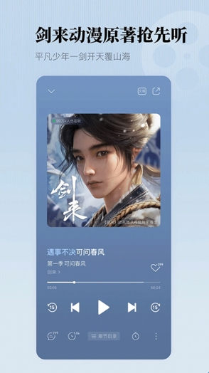 2、沉浸式听书体验:高质量的音频剪辑、适配的背景音乐与音效,共同打造出沉浸式的听书体验。