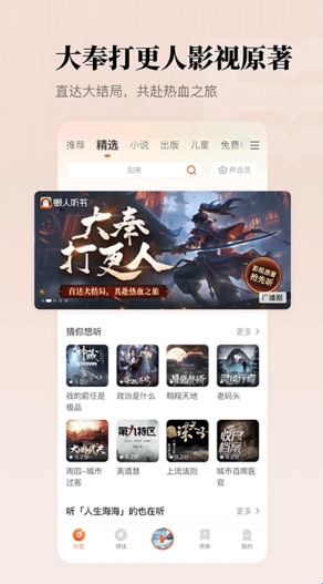 独家版权短音频:除常规有声书外,签约大量自媒体主播与原创作者,推出独家短音频内容 ——如 5分钟职场干货、10分钟历史小故事、3分钟情感随笔等,适配碎片化听书需求。