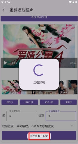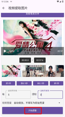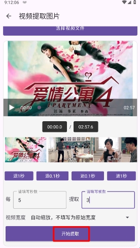 5、完成上传视频后填写秒数和帧数,点击开始提取。