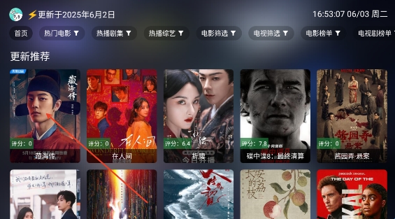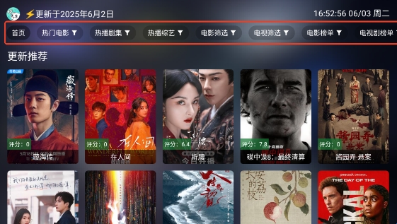 进入应用后,您会看到首页,会有热门电影、电视剧、综艺等内容分类。