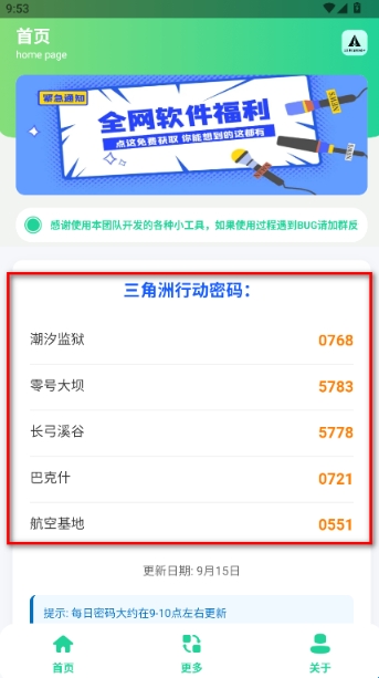 三角洲每日密码助手是一款非常好用的游戏辅助工具,专为三角洲游戏打造而来。软件每日更新最新的机密秘密,方便用户第一时间了解到最新的消息,避免了自己花时间去寻找密码,大大提高了玩家的游戏体验。有需求的小伙伴快来下载体验一下吧!