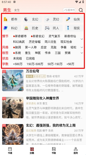 还可以在分类板块进行筛选作品。
