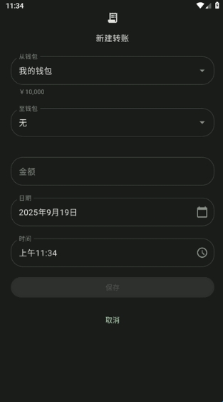 打开软件,首页展示了钱包余额和添加消费交易信息。