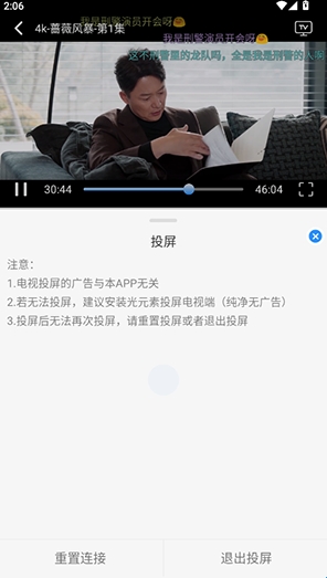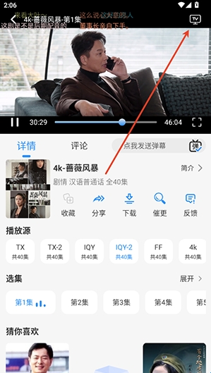 在播放页面点击投屏功能。