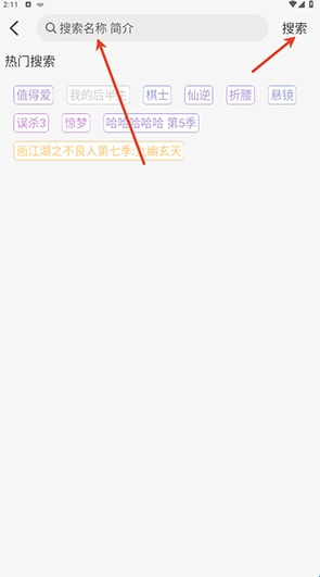 点击首页上方的搜索框,输入想看的影片。