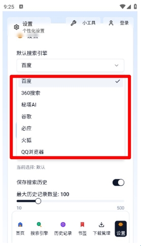 最后涵盖多个搜索引擎,根据所需一键点击搜索引擎即可切换。