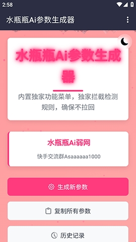 水瓶瓶Ai参数是一款非常好用的手机弱网调试工具。用户可以通过这款软件快速调试弱网参数,支持带宽、延迟丢包率等参数的修改,无需手动调试即可一键完成,大大节约了用户的时间。并且软件无需 root,无广告无会员,想怎么用就怎么用!有需求的小伙伴快来下载体验一下吧!