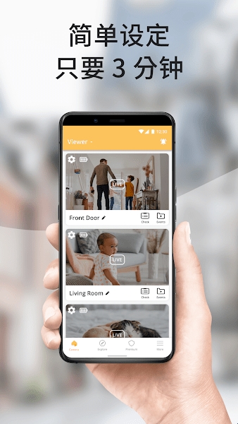 您可以在门口、卧室、小孩房…都放一支装有阿福的手机,一手掌握家中各处的动态。