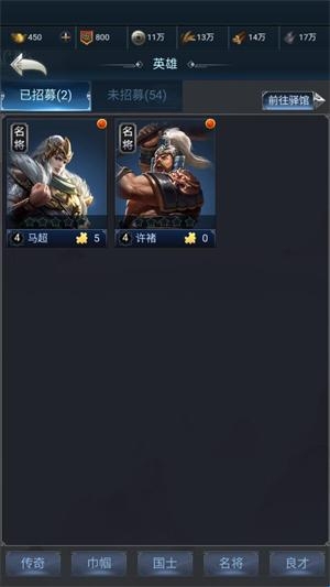 1、众多武将可以让你去招募来进行培养,丰富的兵种可以自由搭配来组建你的军团。