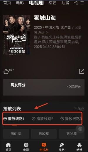 3、用户们观看影视时,如果出现播放卡顿的情况,可以切换影视线路