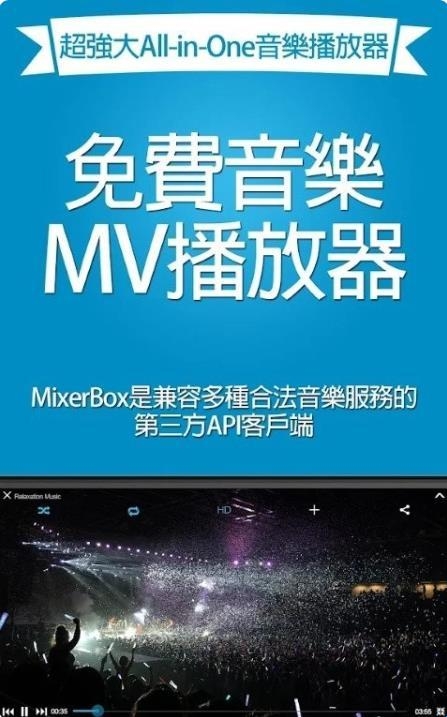 4.这个MixerBox播放器集成了不同的音乐源,为您提供一个应用程序来播放所有您喜欢的音乐MV。
