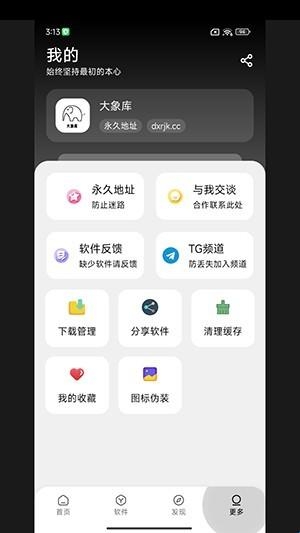 4、来到“我的”页面,可访问永久地址、提交软件反馈、管理下载/收藏,或加入社群渠道。